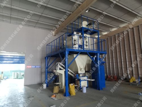 保溫砂漿設備生產線主要是由提升機、預混倉、小料倉、混合機、成品倉、包裝機、除塵器、電控柜、氣相平衡系統(tǒng)組成。采用雙軸槳葉高效混合機,不破壞物料的原始狀態(tài),確保了砂漿的保溫系數(shù)不會因保溫原料的形狀破壞而降低,確保了產品的保溫效果。